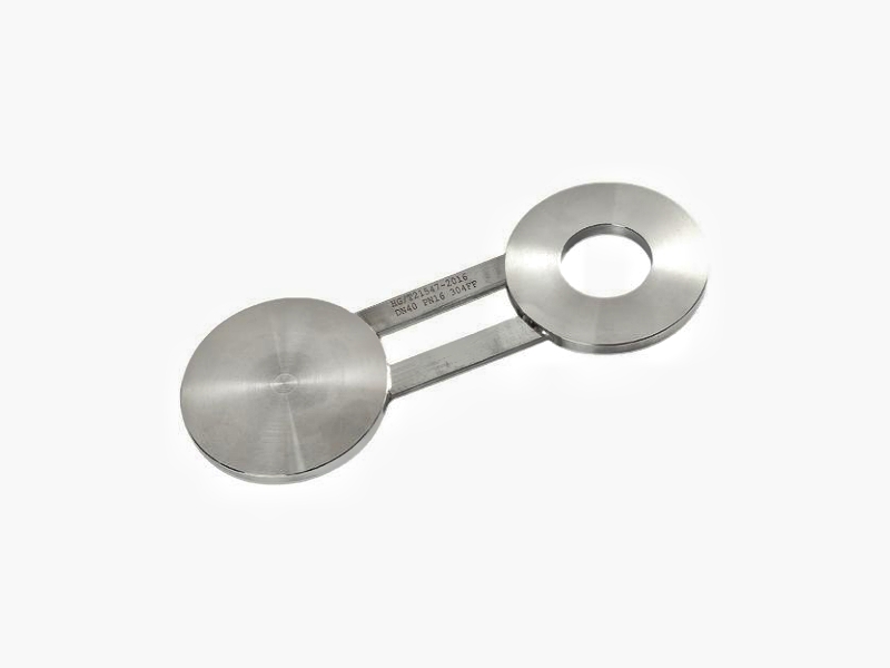 A spectacle blind flange (figure-8 blind flange) is a specialty flange made of two metal discs attached in the middle by a small section of steel. Spectable flanges get their name because they look like a pair of reading glasses, or spectacles. Spectacle flanges, also known as spectacle blind flanges, are most commonly used on piping systems that need to be separated regularly or where the flow through the systems is regularly stopped. One end of the spectacle flange is solid, while the other end has a hole in the center. The spectacle flange can be rotated to place either the solid or hollow end within the pipe system, thereby opening or closing the flow.